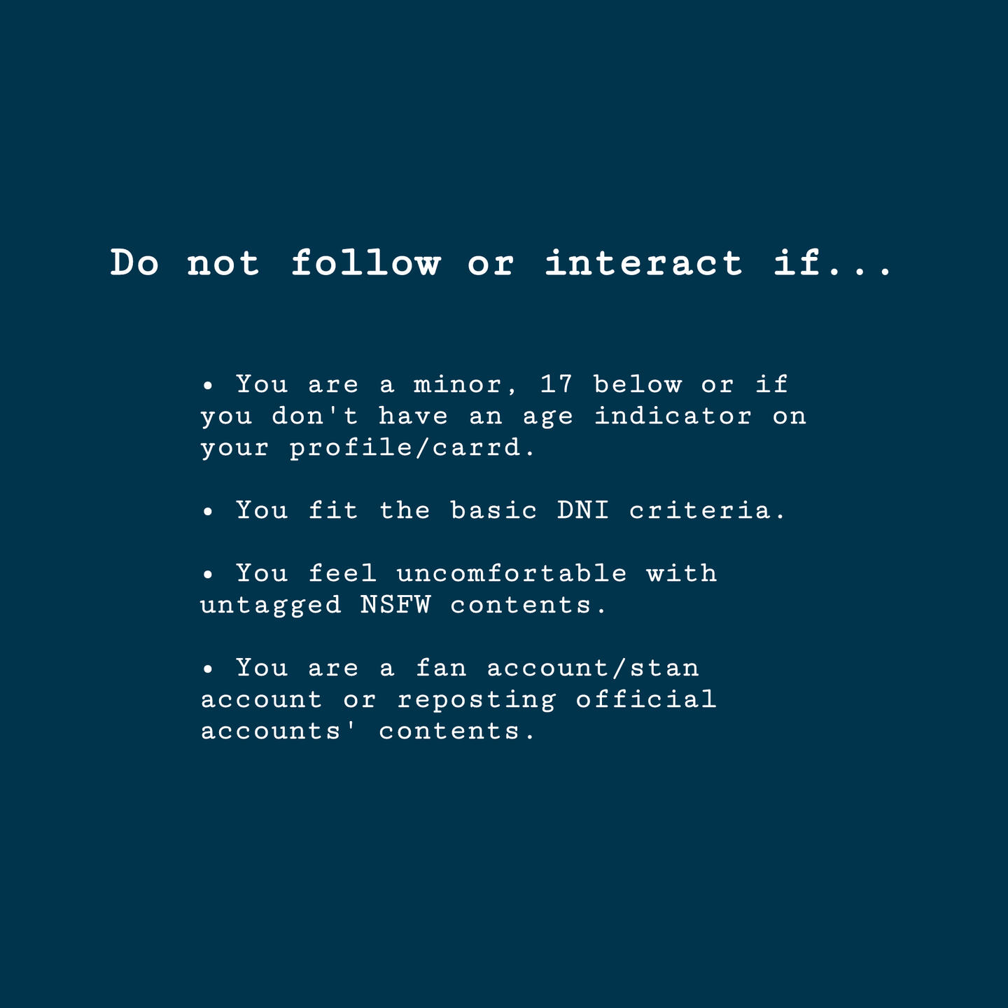 Disclaimer!I am not in any way affiliated with the artists that my account is posting about. This is an original character created for the sole purpose of roleplaying. Any actions that will tarnish the images of the artists should be pointed out via DMs in order to settle it between parties.I am not in any way affiliated with Yuta Nakamoto of NCT, Kim Yohan, Yoo Yongha of WEi.